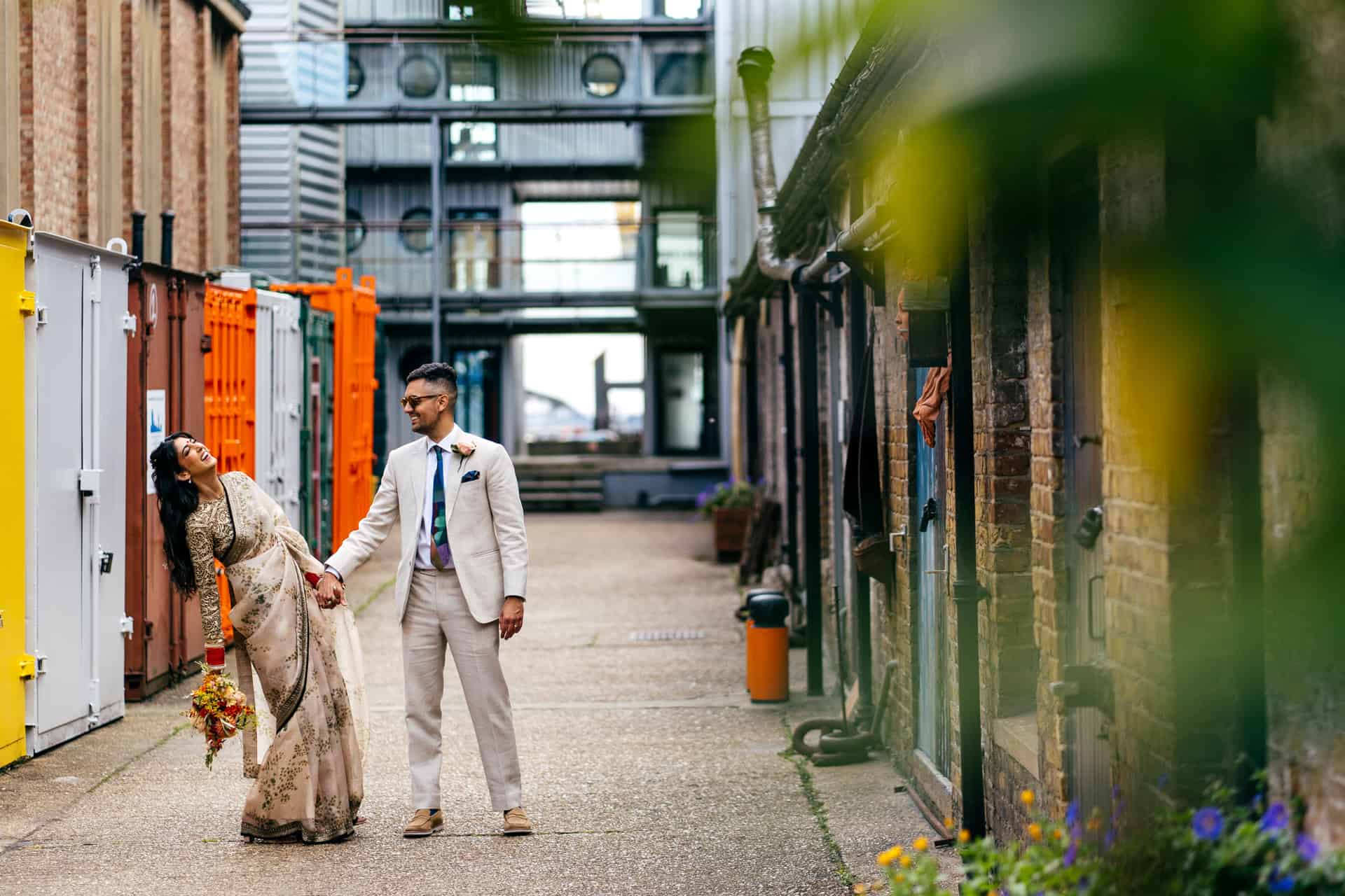 I’ve photographed lots of weddings at Trinity Buoy Wharf over the years, so I know it like the back of my hand. There are some amazing places for colourful and beautiful photos, so do not worry. I’ve gotcha!