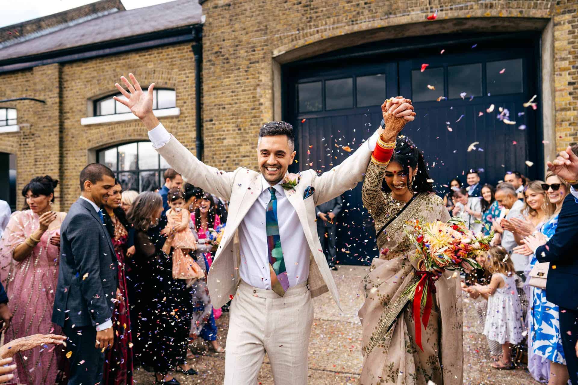 Confetti exit after ceremony at Trinity Buoy Wharf out of The Chainstore